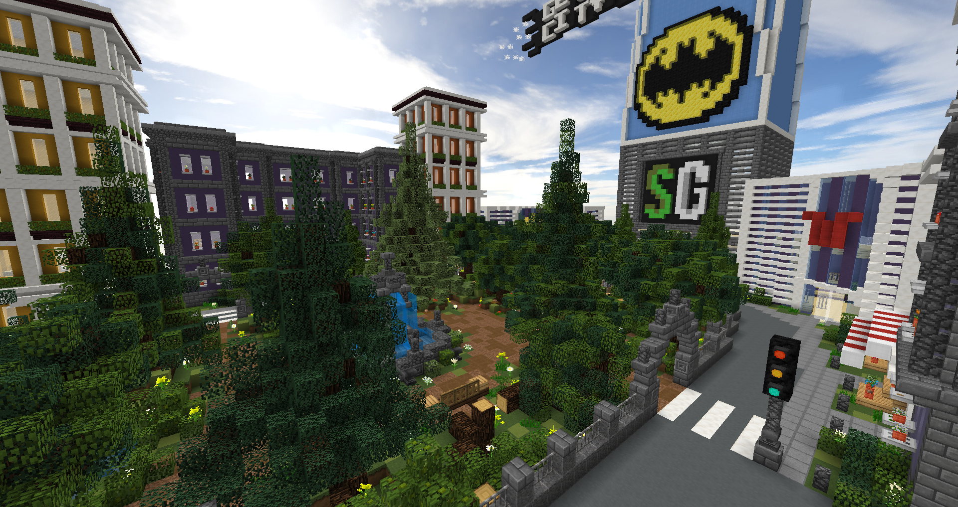 City se skládá z náměstíčka, lesíku, dvou anvil místností, dvou aut, knihovny a budovy seeker spawnu. I když možná vypadá veliká, tak vzhledem k tomu, že do baráků je buď znemožněn přístup nebo jen do jednoho patra, tak se nám mapa dosti zmenší. Hráč se zde může schovat za Anvilku, Piston, Knihovnu, Crafting table a Log.